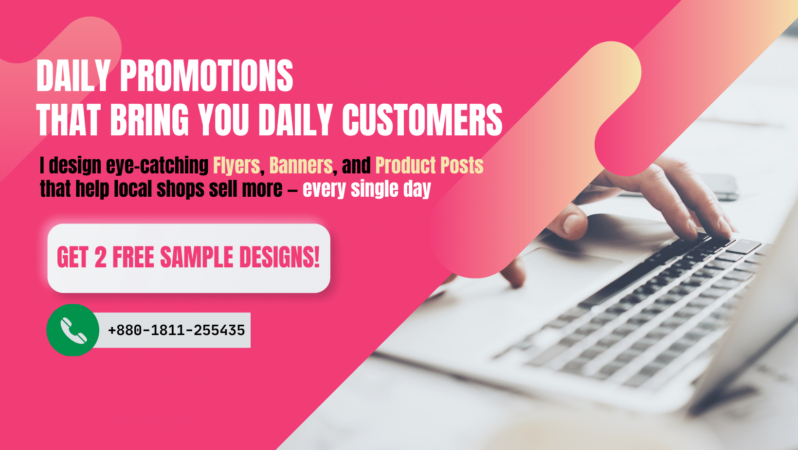 I help local shops and online sellers increase their daily sales with high-quality promotional designs and simple sales-focused landing pages.